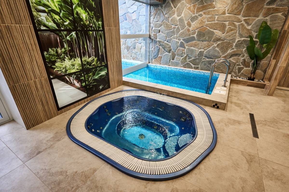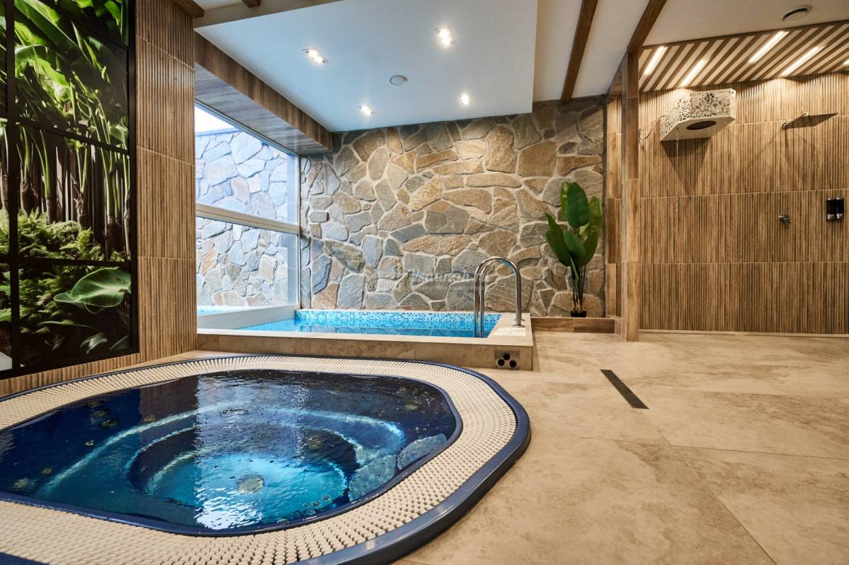 Для отдыха: лечебный бассейн, джакузи, превосходная лаунж-зона с жк-телевизором, бильярд, бар, кальян.